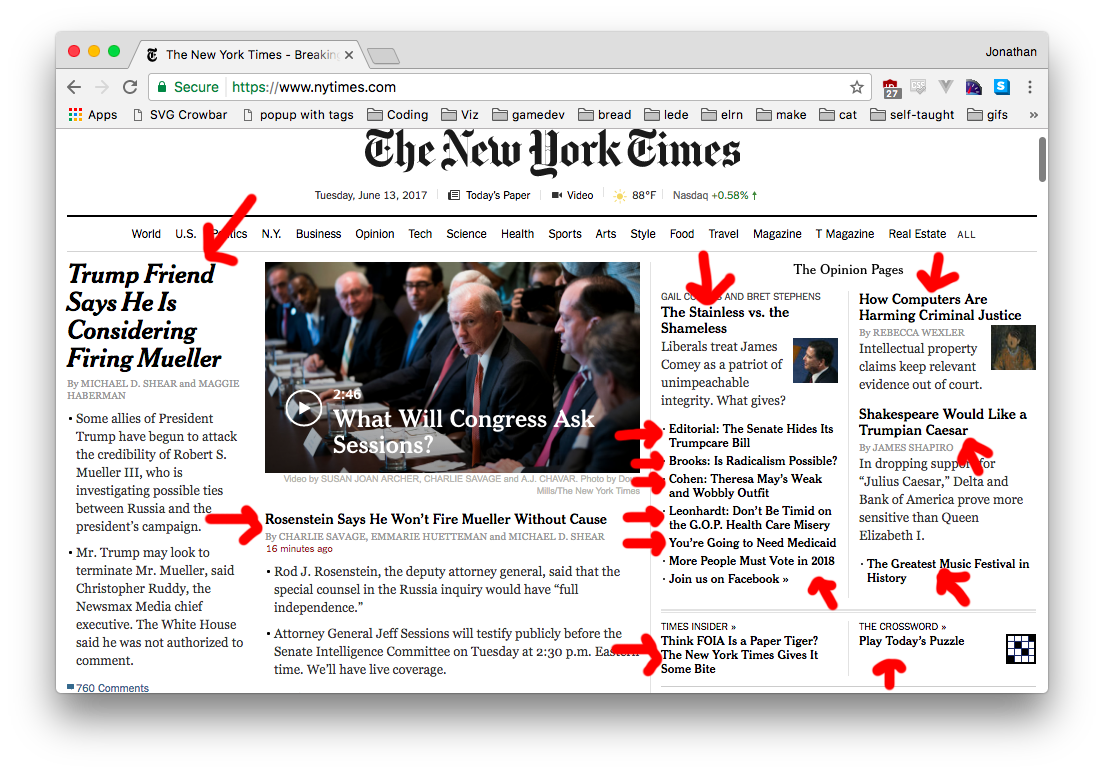 Let’s say we’d like to scrape the New York Times homepage. Maybe we’re interested in all of the headlines.